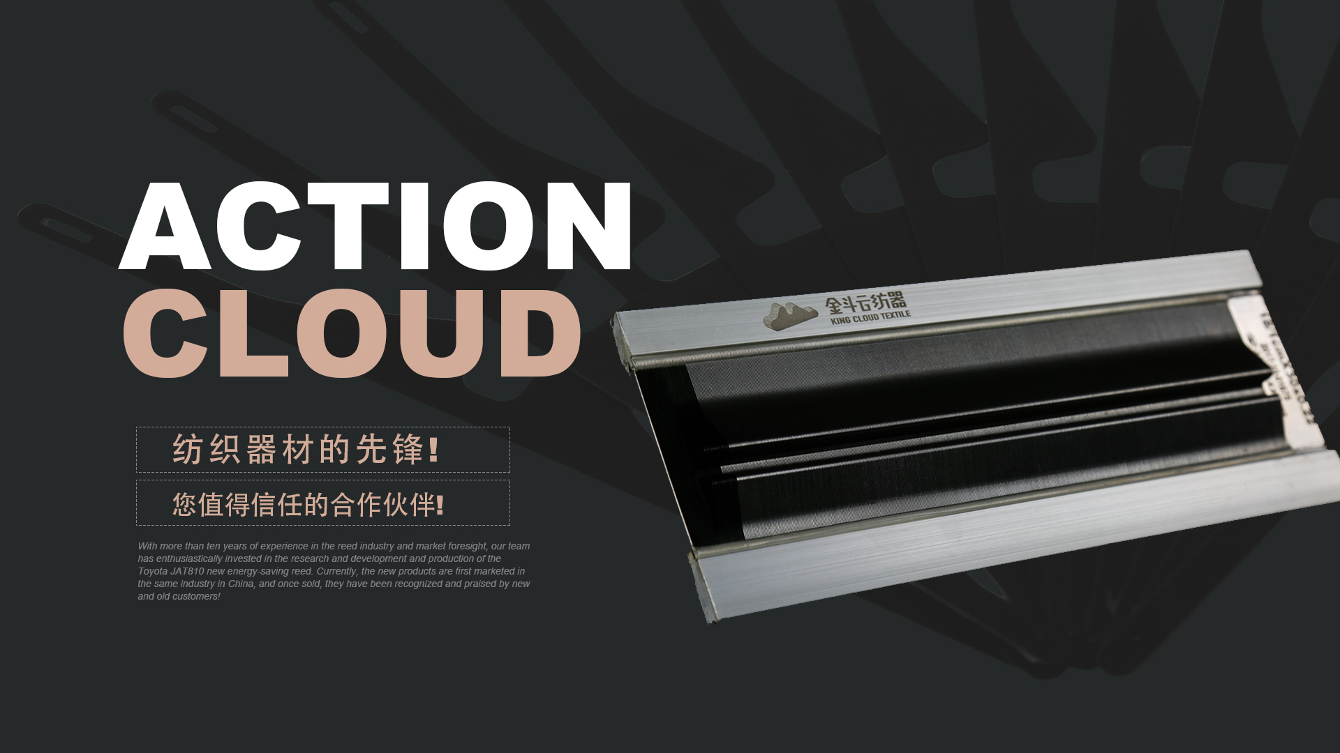 憑借十多年鋼筘行業(yè)經(jīng)驗(yàn)及對(duì)市場(chǎng)的前瞻性,我們團(tuán)隊(duì)滿懷熱情的投入到豐田JAT810新型節(jié)能鋼筘的研發(fā)和生產(chǎn)當(dāng)中,目前新產(chǎn)品在國內(nèi)同行業(yè)中先行上市銷售,一經(jīng)銷售就得到了新老客戶的認(rèn)可和好評(píng)!
